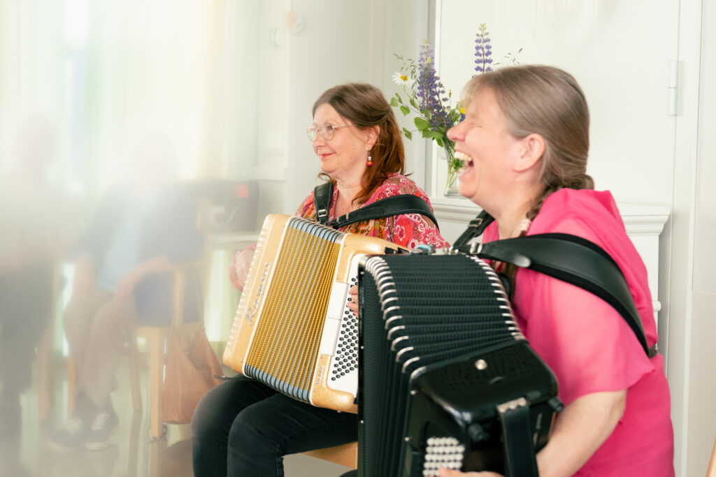 Five years ago, two top musicians, accordion artists Maria Kalaniemi and Elina Leskelä, expanded their career paths and responded to the need to perform music in care homes for people with memory disorders. Since then, they have been diligently touring care home wards, senior residences, and memory conferences. With their playing, Maria and Elina build bridges to memories and bring the joy of music to those who cannot attend concert halls. For five years, the audience’s reception has always been equally joyful!